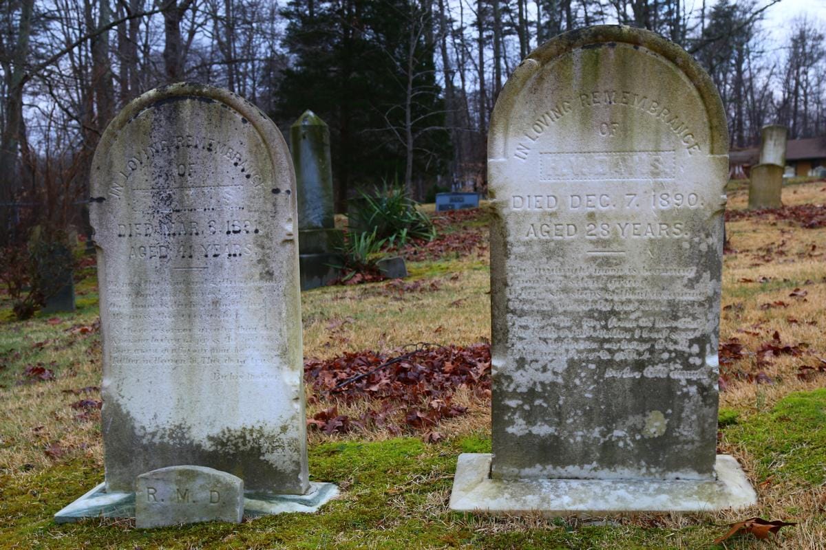 Arrington, Mabel P. 2 Aug 1878 - 8 May 1945 Arrington, Mae A. 16 Nov 1880 - 9 Nov 1881 Arrington, Mary E. 8 Mar 1846 - 18 Mar 1915 Arrington, S. A. 4 Mar 1817 - 20 Jan 1900 Arrington, Sarah H. 25 Sep 1853 - 22 Oct 1933 Arrington, T. T. 18 Aug 1845 - 25 Dec 1879 Arrington, William H. 29 Aug 1848 - 30 Nov 1919 Balch, W. C. died 16 Jan 1908 age 72 years Bell, Benjamin B. 18 Nov 1857 - died 1900 Barbee, Charles A. 05 Mar 1861 - 4 Oct 1939 Barbee, Mollie V. 19 May 1876 - 8 Sep 1972 Beach, D. S. 28 Jul 1848 - 2 Mar 1923 Beach, Martha died 7 Apr 1900 58 years, w/o David Beavers, V. C. 01 Oct 1831 - 5 Feb 1889 Bell, Lucy Lee 1863 - 1943 Bell, Ruth Lee 06 Oct 1892 - 2 Dec 1922 Burton, Lucy D. 23 Feb 1957 - 25 Sep 1984 Carter, Daniel Henry 18 Sep 1872 - 16 Jan 1957 Carter, Elizabeth A. V. 25 Dec 1872 - 16 Jun 1932 Carter, Grace Potter 8 Jun 1876 - 22 Apr 1970 Carter, L. Tillman 9 Oct 1847 - 17 Mar 1924 Carter, Sarah Elizabeth 04 Mar 1865 - 24 Aug 1943 Clark, James 1818 - 1897 Clark, Sophia 1820 - 1903 Cooksey, Emma I. 1860 - 1929 Cornwell, Ann Elizabeth Posey 7 Dec 1845 - 2 Sep 1933 Cornwell, Lula V. 2 Sep 1872 - 28 Feb 1921 Cox, Martha Jane 28 May 1959 - 7 Jun 1998 Cronkite, William W. 24 Mar 1869 - 3 Feb 1931 Crouch, Annie 1884 - 1969 Crouch, Randolph T. 1881 - 1936 Davis, Ashby 1912 - 1952 Davis, Bertie Fairfax 1886 - 1977 Davis, Charles A. 25 Jul 1868 - not given Davis, Charles W. not legible Davis, Clara L. 1898 - 1993 Davis, Elijah P. 14 Nov 1860 - 12 Mar 1949 Davis, Ella M. 1874 - not given Davis, Emma J. 28 Jun 1857 - 16 Jun 1933 Davis, Florence V. 15 Sep 1859 - 16 Jul 1927 Davis, Francis C. 10 Jul 1842 - 11 Mar 1906 Davis, Frederick Lycurgus 22 Nov 1886 - 25 Jan 1917 Davis, French S. 1881 - 1961 Davis, George E. 1840 - 1907 Davis, George W. 1 Jun 1832 - 16 Jun 1910 Davis, Grace A. 1887 - 1932 w/o French Davis, Hatie 11 Jul 1872 - 24 Jan 1943 Davis, Hewit Brent 11 Jun 1858 - 18 Jan 1941 Davis, Huldah J. 19 Dec 1861 - 3 Nov 1890 Davis, Idella F. 30 Jun 1867 - 30 Jul 1906 Davis, James 10 Mar 1806 - 16 Jan 1879 Davis, James B. 1 Jul 1841 - 18 Sep 1913 Davis, Joseph R. 10 Jun 1863 - 13 Jan 1926 Davis, Lillie M. 4 Oct 1886 - 6 Jun 1991 Davis, Linnie Loe 1860 - 1937 Davis, Maggie M. 1844 - 1898 Davis, Maggie w/o Earl S. died 1907 Davis, Mary K. 26 Nov 1809 - 19 Jan 1879 Davis, May W. 1882 - 1913 Davis, R. M. 4 Feb 1855 - 25 Feb 1931 Davis, Roue G. 05 Oct 1895 -not given Davis, Sallie F. 20 Oct 1848 - 19 Sep 1916 Davis, Susie Rhoena infant daughter of Jacob & Elizabeth 26 Sep 1904 - 23 Jan 1905 Davis, Susan J. 08 Oct 1833 - 23 Feb 1915 Davis, Thaddeus T. 1870 - 1916 Davis, Virginia W. 1887 - 1915 Davis, Wade H. 1878 - 1959 Davis, William A. 18 Feb 1856 - 15 Apr 1921 Davis, Wilson 10 Jan 1832 - 9 Jan 1902 Dulaney, Charles H. died 20 Mar 1896 - 81 years old Dyer, Etta 15 Mar 1895 - 15 Feb 1905 Dyer, Julia Ashford 22 Feb 1855 - 10 Jul 1912 Dyer, Julia Franklin 15 Mar 1895 - 15 Feb 1905 Dyer, Nathaniel G. 19 Aug 1857 - 08 Jan 1914 Ellicott, Charles B. 5 Sep 1891 - 3 Feb 1974 Ellicott, Helen June 1922 - 1925 Ellicott, John Milton 30 Jun 1865 - 2 Feb 1954 Ellicott, Lucy M. 10 May 1890 - 20 Jul 1970 Ellicott, Margaret 31 Jan 1897 - 2 Feb 1981 Ellicott, Mary E. 13 Mar 1864 - 10 Apr 1941 Fair, Catherine V. 11 May 1905 - 28 Aug 1997 Fair, Charles B. 9 May 1903 - 17 Apr 1995 Fairfax, Della 19 Sep 1876 - 1 Mar 1958 Fairfax, Emma 1884 - 1977 Fairfax, James W. 2 Dec 1838 - 11 Feb 1922 Fairfax, Lawrence E. 26 Sep 1878 - 8 Aug 1970 Fairfax, Lucy 2 Mar 1848 - 22 Aug 1936 Green, Maggie M. 9 May 1872 - 13 Nov 1950 Grimes, Enoch 1 Mar 1813 - 18 Nov 1892 Hampton, Edward C. 15 Sep 1894 - 8 Jan 1974 Hampton, Emmie 1861 - 1935 Hampton, Harold 17 Oct 1912 - 3 Dec 1995 Hampton, Helen June 1922 - 1925 Hampton, J. O. 14 Feb 1844 - 26 Apr 1929 Hampton, James Jr. 1890 - 1908 Hampton, Mary F. 05 Apr 1888 - 27 May 1927 Hampton, Mary F. Jackson 19 Aug 1898 - 22 Aug 1983 Hampton, Richard H. 04 Oct 1887 - 9 Mar 1967 Hampton, Rosemary J. 30 Jan 1923 -21 Oct 1996 Hampton, Ruth Mills w/o Edward 25 Oct 1896 - 3 Mar 1917 Ives, Martha E. 24 May 1848 - 19 Sep 1925 Jackson, Mary F. Hampton 19 Aug 1898 - 22 Aug 1983 Keys, Ann M. died 1 Oct 1912 Keys, Dorcas Virginia w/o Charles Dulaney 13 Dec 1834 - 19 Dec 1906 Keys, Emma died 18 Dec 1914 Keys, J. L. 11 Feb 1846 - 5 Feb 1914 Ledman, Alton 1879 - 1898 Ledman, Colman C. 1886 - 1929 Ledman, Cordella 12 Jul 1823 - 15 Aug 1903 Ledman, Lavania w/o Lycurgus 29 Aug 1853 - 9 Apr 1916 Ledman, Lycurgus 09 Aug 1844 - 03 Aug 1903 Maddox, William Co. B. 49th VA Inf. CSA Mayhugh, Amanda J. April 1826 - February 1899 Mayhugh, Georganna 14 Feb 1850 - 04 May 1917 McEwing, Julia F. 21 Aug 1848 - 31 Oct 1927 Mills, Charles Leaman 19 Aug 1893 - 29 Jan 1971 Mills, Earle E. 30 Jan 1893 - 9 Dec 1923 Mills, Emery Coryle 16 Jun 1910 - 31 Aug 1983 Mills, Esmond 11 Oct 1899 - 16 Jun 1966 Mills, Goldie Davis 12 Aug 1896 - 1 Sep 1978 Mills, Mary D. 19 Feb 1877 - 13 Jan 1965 Mills, Minnie Lee 1870 - 1942 Mills, Sanford 1866 - 1935 Milstead, Coleman 16 Jan 1836 - 14 Aug 1925 Milstead, Ernest 29 Sep 1877 - 7 Jul 1907 Milstead, Elizabeth 10 Oct 1837 - 15 Apr 1912 Milstead, Lewis 03 Dec 1887 - 3 Feb 1961 Milsteas, Lillie M. 4 Oct 1886 - 6 Jun 1991 Milstead, Noah 20 May 1848 - 11 Jul 1909 Moore, Mary E. 12 Mar 1838 - 11 Feb 1919 Neill, Eva T. 20 Jun 1884 - 4 Feb 1918 Neill, Walter Opp 15 Jan 1872 - 5 Mar 1928 Owens, Betty L. 25 Aug 1926 - 1 Jun 1985 Owens, Elmo L. 1 Nov 1923 -not given Pearson, Annie Cooper 3 Sep 1872 - 31 Dec 1955 Pearson, Caroline A. 29 Mar 1845 - 12 Jan 1925 Pearson, Francis Marion 24 Feb 1869 - 19 Dec 1954 Pearson, James R. Co. B. 49th VA Inf. C.S.A. Pearson, Richard R. 8 Sep 1898 - 16 Jul 1933 Pettitt, Edgar Perry 2 Nov 1867 - 3 Aug 1951 Pettitt, George T. 22 May 1833 - 20 Oct 1907 Pettitt, J. L. 9 Aug 1840 - 4 Jan 1905 Pettitt, John Q. 13 Apr 1836 - 1 Oct 1924 Pettitt, Lucy C. 24 Dec 1870 - 28 Dec 1917 Pettitt, Mildred 17 Mar 1846 - 14 Apr 1920 Pettitt, William T. 13 Dec 1873 - 3 Mar 1900 Pierson, Anni