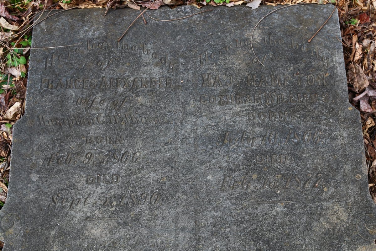 To the memory of our dear mother Susan Pearson consort of George Chapman, born May 20, 1780, died April 14, 1856, -under the shadow of the wing I take my rest and sleep. George Chapman by his wife Unable to read - looks like Francis Alexander? Unable to read - looks like Maj. Hamilton Williams? Thomas Williams _____ Feb 28, 1852 - July 30, 1852, aged 5 mo & 2 days Half buried Tombstone - may or may not be inscribed Graves marked with Fieldstones |