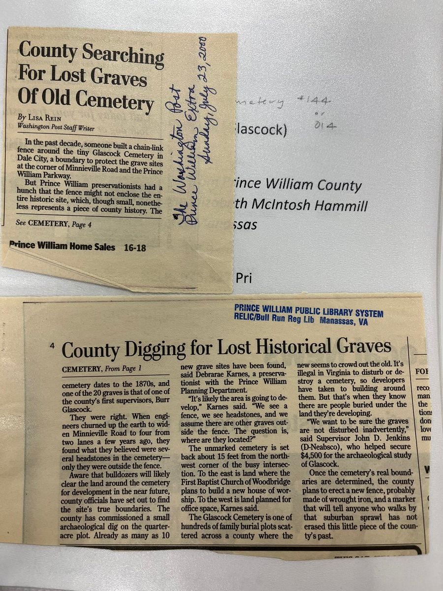 | David Cuff | 2021 | Cemetery is in good condition and is maintained by Historic Prince William. The old chain link fence was removed and a wooden split rail fence was installed by an Eagle Scout Project. |