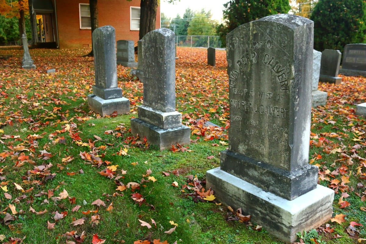 In the graveyard are inscriptions to the following people: Mary F. Leary (1861-1924), William H. Leary (1846-1926), Charles Leary (1872-1906), Bertie Leary (1875-1900), Katie S. Clarke (1864-1939), Charles E. Clarke (1864--), Elmer Milton Clarke (1888-1914), Thomas Bayton Alexander (1854-1898), William H. Smith (1858-1927), Emma Jane Alexander (1853-1924), Manly P. Athey (1895-1897), Fannie M. Brawner (1838-1917), Mary J. Curtis (1877-1915), Lavenia G. Curtis (1848-1922), James A. Bland (1854-1914), Wesley Bland (1835-1911), Perry L. Bland (1879-1913), Mary C. Bland (1840-1914), Edward Bland (1838-1915), John Thomas Dewey (1857-1926), Charles H. Arrington (1838-1909), Andrew J. Calvert (1871-1907), John Perry Calvert (1896-1908), and Maud E. Sabine (1884-1914), Dewitt C. Alexander (1848-1903), Sarah A. Alexander (1825-1878), Hattie S. Alexander (1876-1878), and Robert M. Alexander (1866-1887).