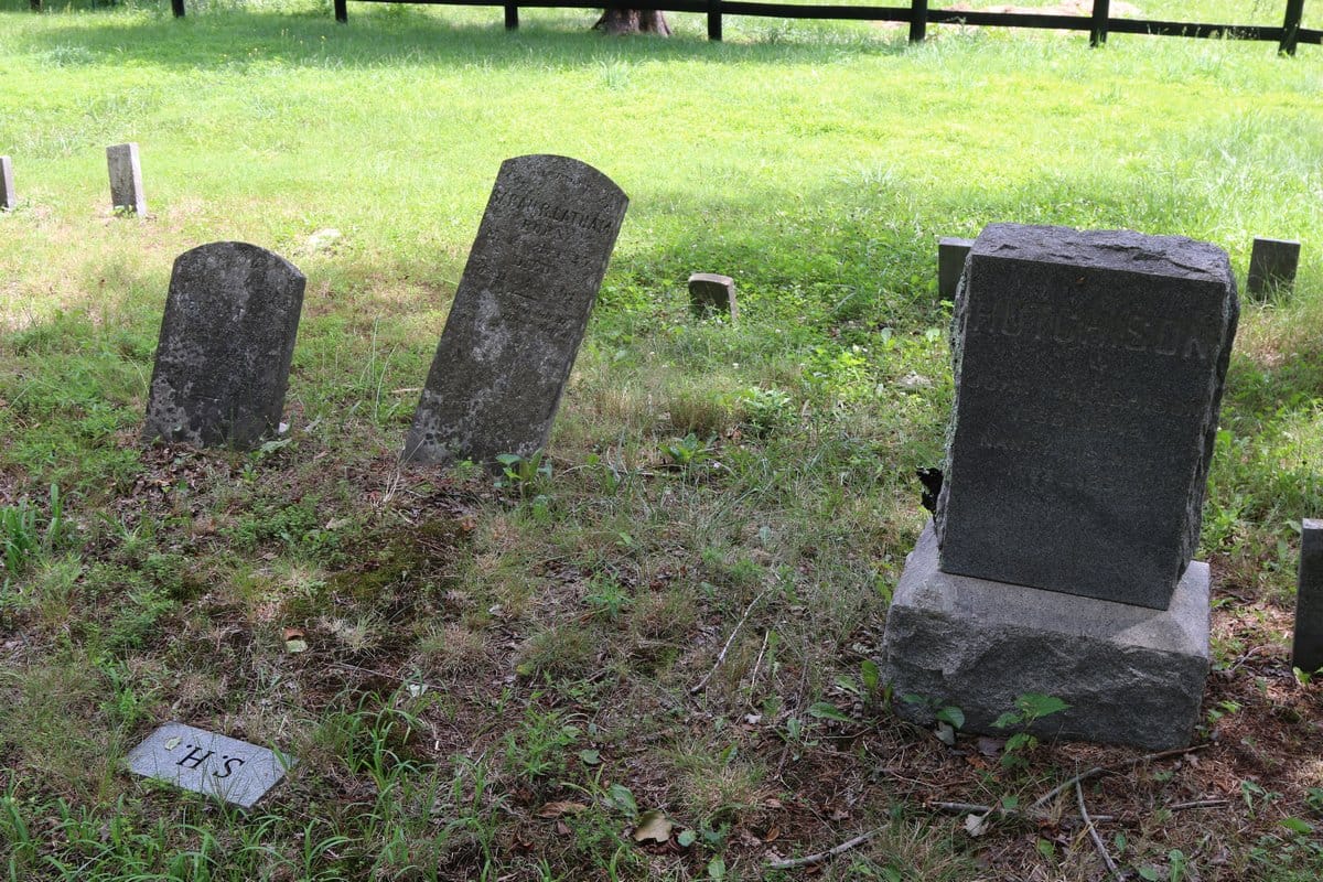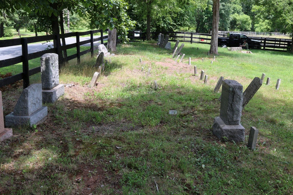 Close by the road, just at the approach to the house, is the family graveyard. The inscriptions on some of the stones are so worn that it is impossible to read them. Those decipherable are as follows: