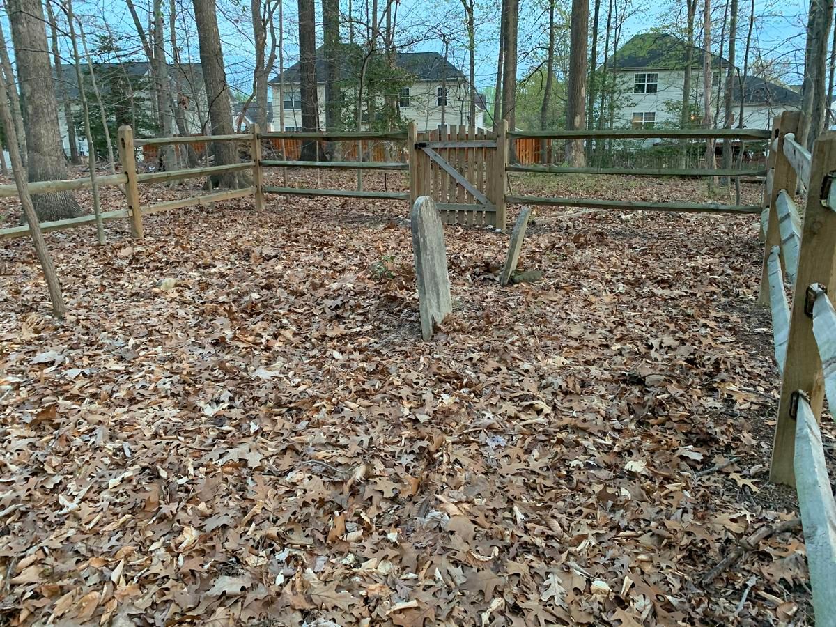 | David Cuff | June 2014 | The property around the cemetery is being developed with single family homes in 2014-2015. It looks like the houses are considerable distance from the cemetery with a storm water pond between the houses and cemetery. The headstones are in decent shape, George's is broken but it's a low break and it has been reset. There is an almost overgrown trail that runs next to the cemetery in the direction of Northeast to Southwest. |