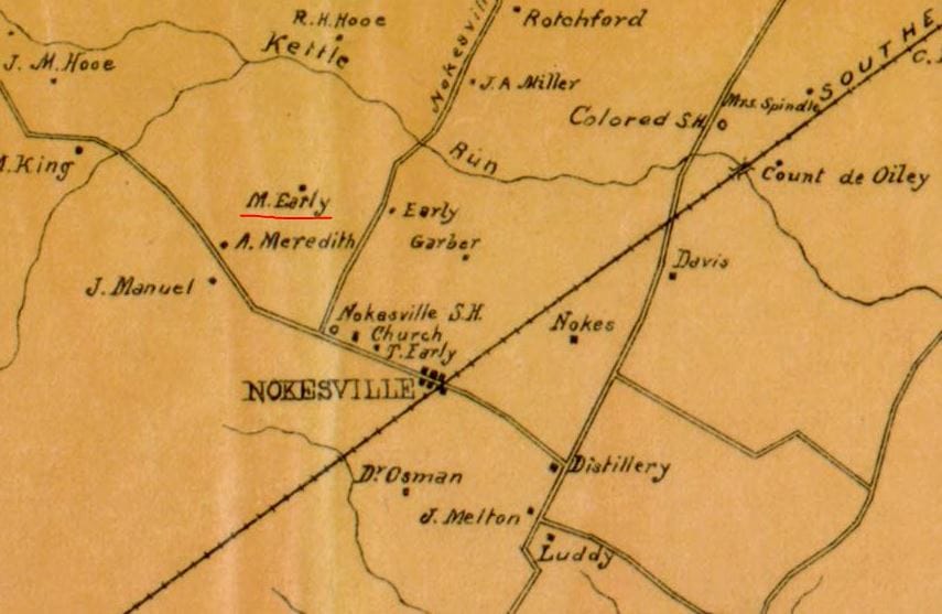 Section of William Brown's 1901 map that shows Michael Early's house.