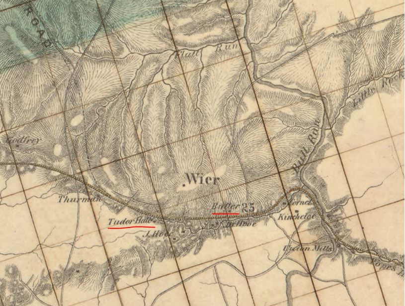 This railroad map from 1854 shows Butler (Lewis B.) as the owner of the land where the Conner house sits. The house was constructed about 1820 with an addition added in 1855. The Railroad cut through the property leaving about 25 acres east of the railroad track. This map also shows the house known as Tudor Hall. This area was known as Tudor Hall before the railroad came through and the Civil War. The area was named after a magnificant house called Tudor Hall. Lewis B. Butler also owned the Tudor Hall house for a time. He purchased it for about $6,000.
