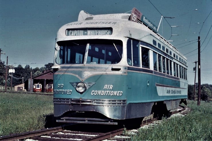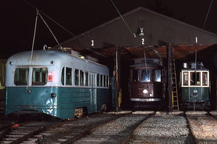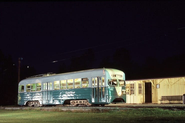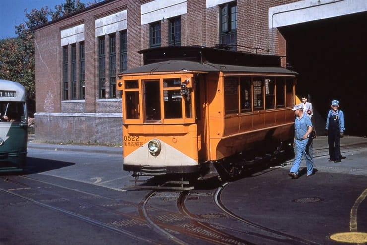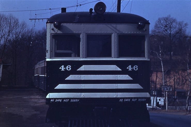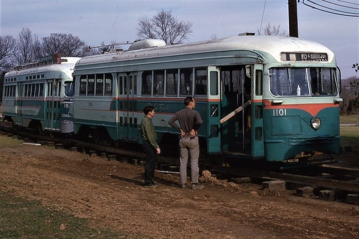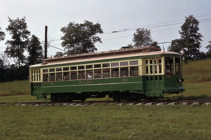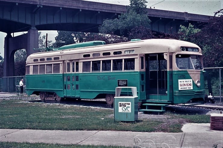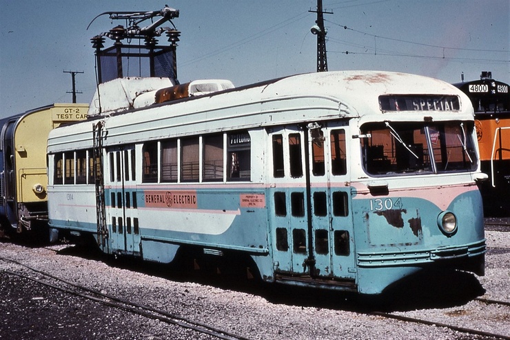 General Electric Corp Erie, PA Ex DC Transit #1304 Used as test car for automated operation. 1963-1975 Sold to trolleyville USA in Cleveland Ohio, Now at Seashore Trolley Museum in Kennebunkport ME. Photo taken 1976 - #135