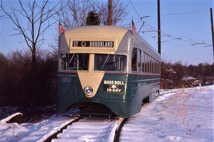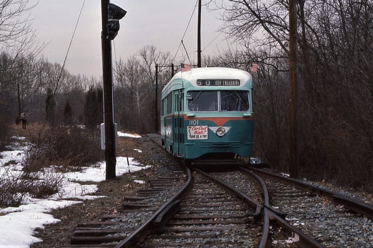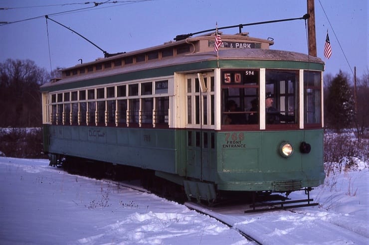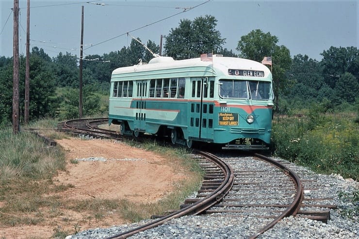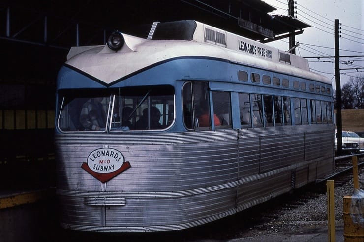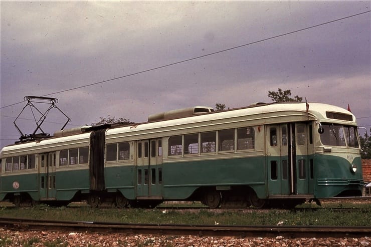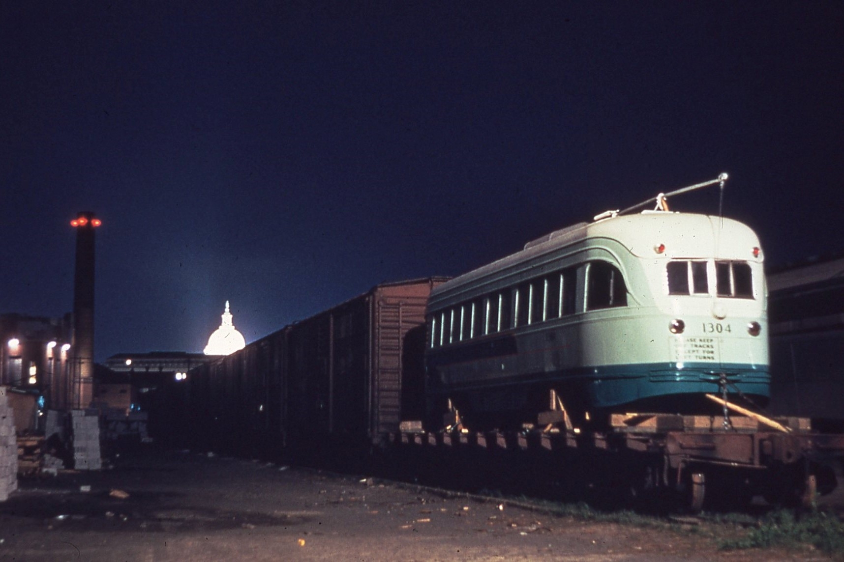 General Electric Corp Erie, PA Ex DC Transit #1304 Used as test car for automated operation. 1963-1975 Sold to trolleyville USA in Cleveland Ohio, Now at Seashore Trolley Museum in Kennebunkport ME. Photo taken 1976 - #135