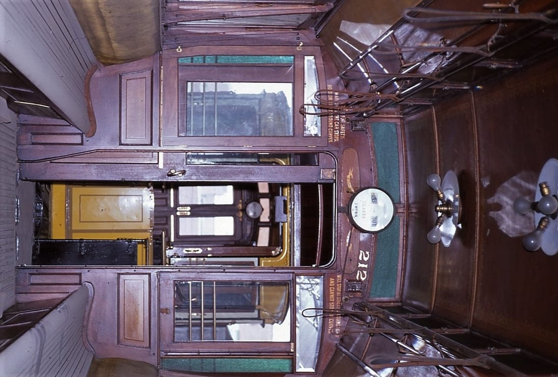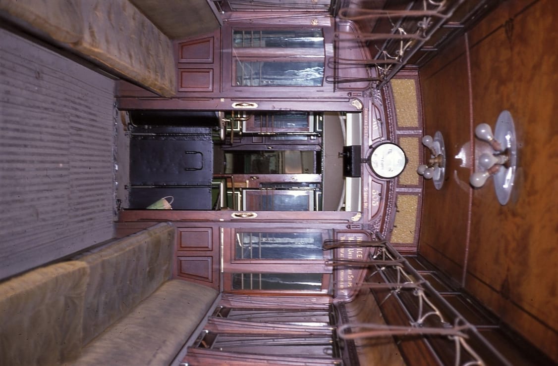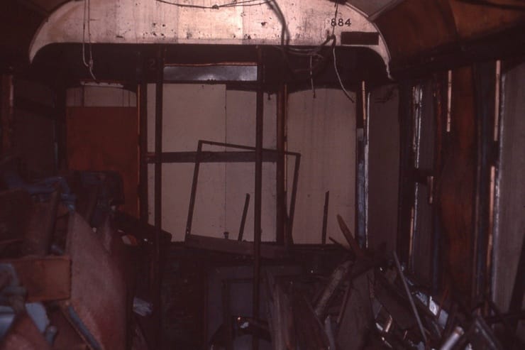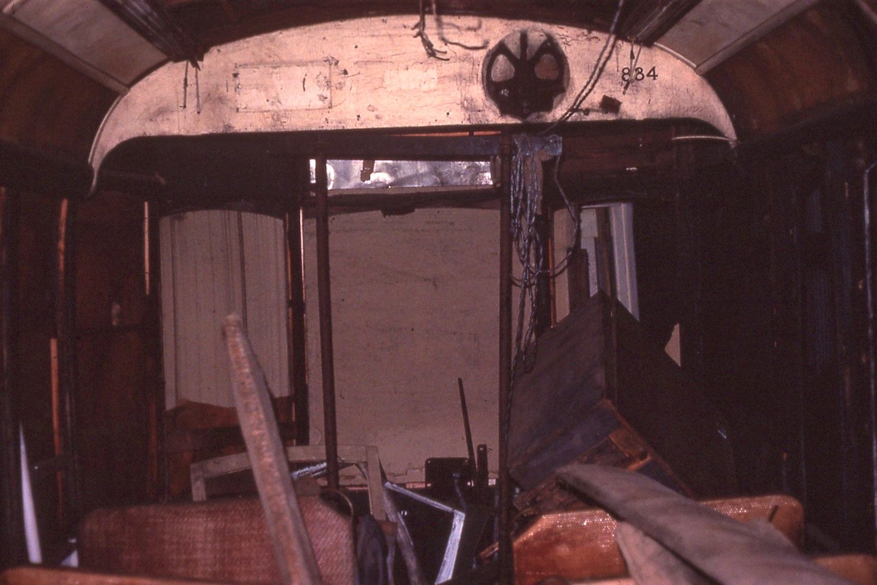 Capital Transit #884, View into Vestibule, towards #1 end. May 20 1984, At Shore Line Trolley Museum, Photo by J, Shriver - #121
