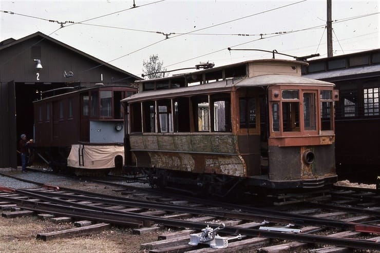 NCTM, Wheaton. Lower carhouse #1 #120, Ex-Graz, Austria 1909 #6062 and #7802, Ex-Vienna Austria, Both made in 1910. Taken Sept. 28, 1985 - #113
