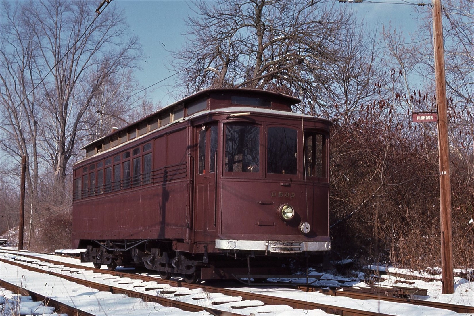NCTM, Wheaton, MD, Sycamore Curve, #0509, Ex Wash Ry and Electric, American Car Co, 1899, taken Feb. 1986 - #53