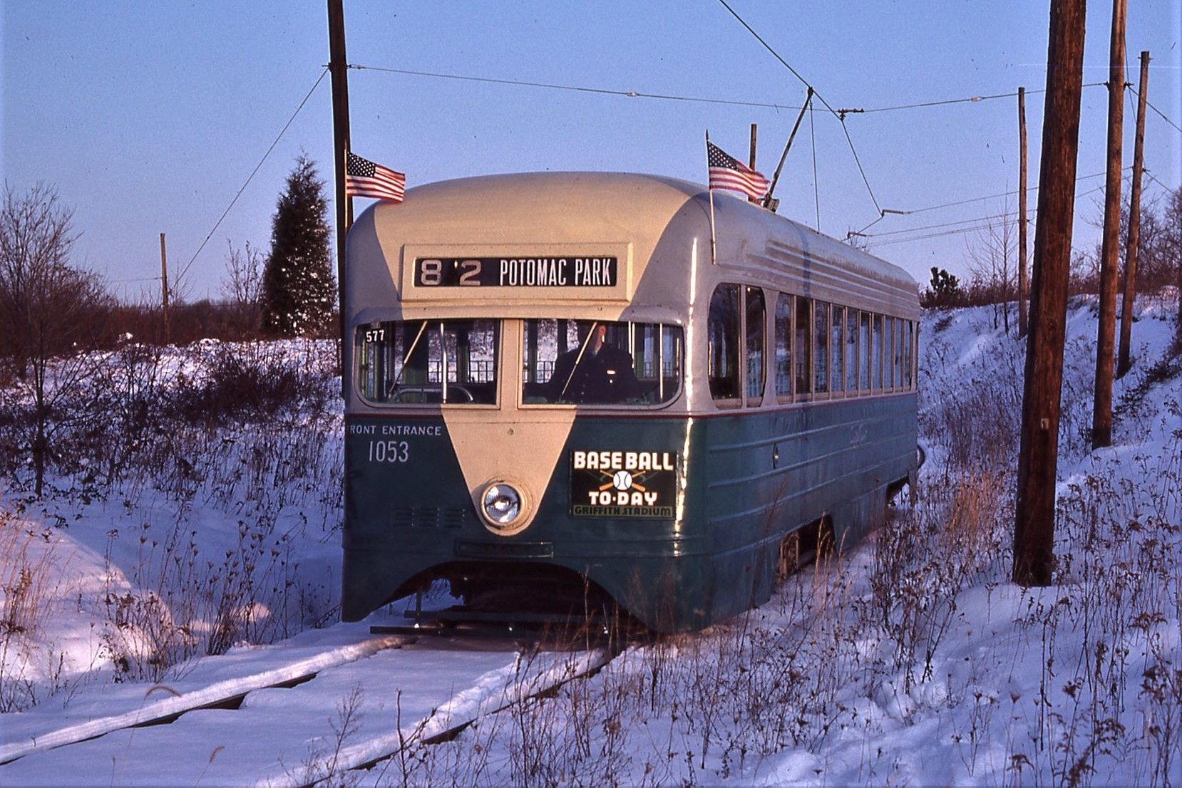NCTM, Wheaton MD, Fish Hook Siding, #1053, Ex-DCTS, 1935 Express, Pre-PCC, St. Louis Car Co. Taken Feb. 16, 1985 - #87
