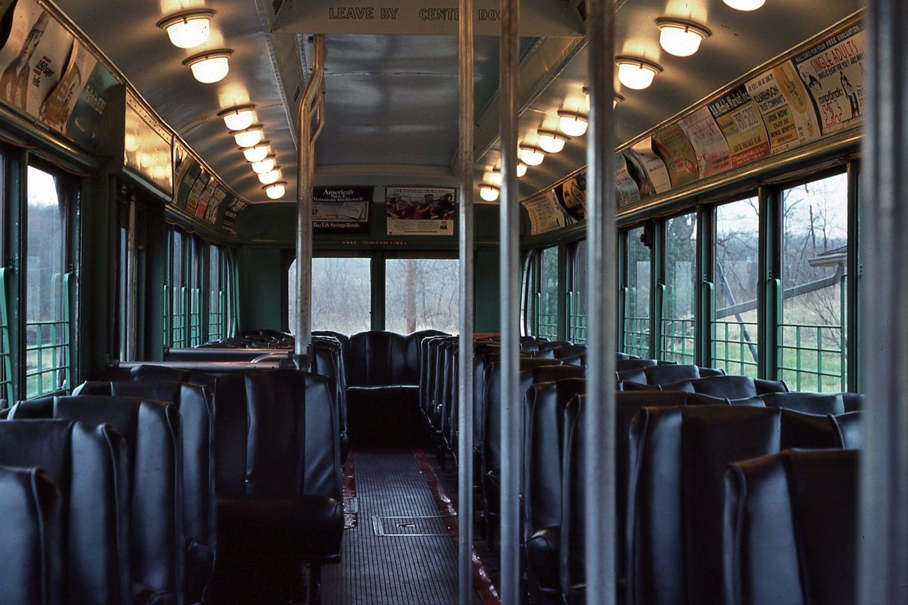 Capital Transit #884, Interior, towards #2 end. May 20 1984, At Shore Line Trolley Museum, Photo by J, Shriver - #122