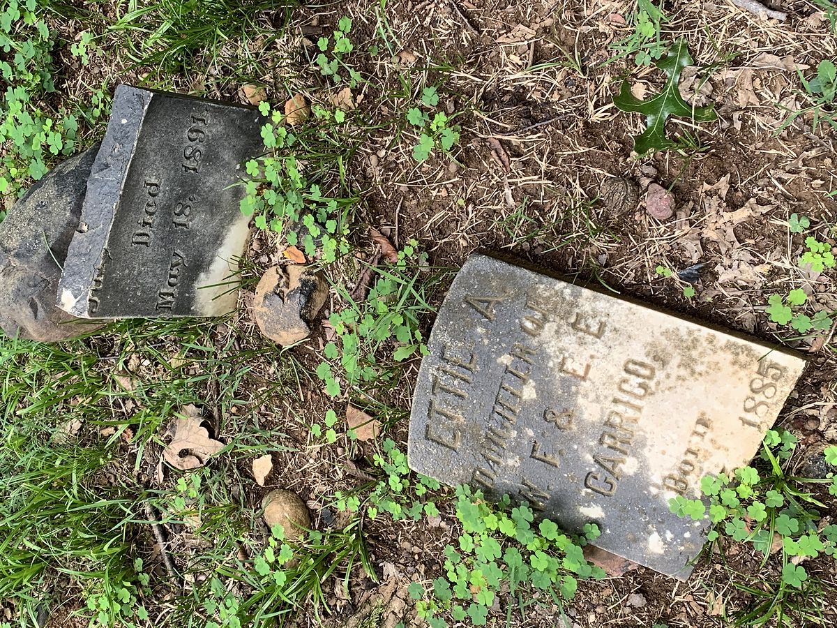 Elizabeth E. Carrico, died 1805, age unknown (wife of William) Musea D. Carrico, Born 1873, Died June 17, 1894 One unknown person with death date of May 28, 1907 (stone is broken) |