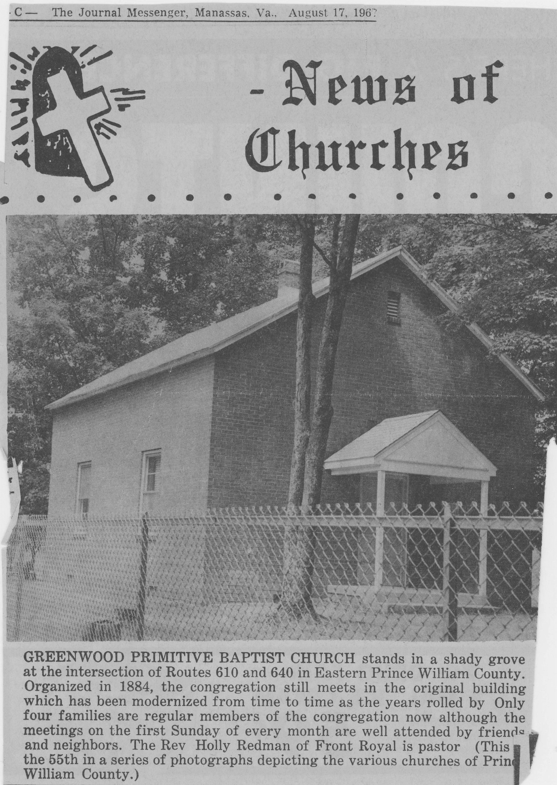 This congregation, organized by persons who had formerly belonged to Chopawamsic Church in Stafford County was in existence as early as 1881, for that year Elder Wynn is known to have preached to the little group of Baptists. The first pastor, however, was John T. Alexander, who began his ministry in 1883. The church was dedicated in June of 1884 and in August of the same year joined the Baptist association. At the courthouse is recorded the deed for the land, which was a gift from the Danes of Pilgrims' Rest, dated October 24, 1887. The trustees then were George Tansill, George Maddox, and Ed Calvert.