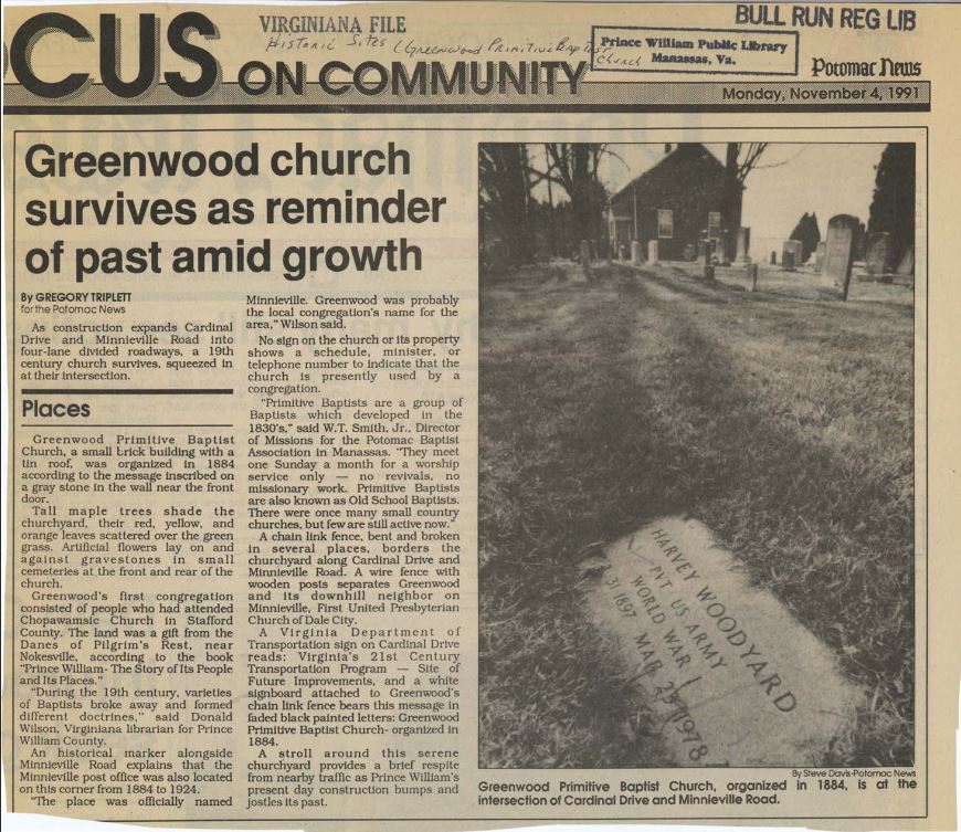 | Ron Turner | 2001 | The Church on the corner of Minnieville and Cardinal Drive. This old cemetery has many Tombstones and is well maintained. I did not copy any of the Tombstones. |
