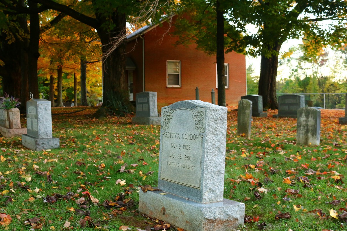 In the graveyard are inscriptions to the following people: Mary F. Leary (1861-1924), William H. Leary (1846-1926), Charles Leary (1872-1906), Bertie Leary (1875-1900), Katie S. Clarke (1864-1939), Charles E. Clarke (1864--), Elmer Milton Clarke (1888-1914), Thomas Bayton Alexander (1854-1898), William H. Smith (1858-1927), Emma Jane Alexander (1853-1924), Manly P. Athey (1895-1897), Fannie M. Brawner (1838-1917), Mary J. Curtis (1877-1915), Lavenia G. Curtis (1848-1922), James A. Bland (1854-1914), Wesley Bland (1835-1911), Perry L. Bland (1879-1913), Mary C. Bland (1840-1914), Edward Bland (1838-1915), John Thomas Dewey (1857-1926), Charles H. Arrington (1838-1909), Andrew J. Calvert (1871-1907), John Perry Calvert (1896-1908), and Maud E. Sabine (1884-1914), Dewitt C. Alexander (1848-1903), Sarah A. Alexander (1825-1878), Hattie S. Alexander (1876-1878), and Robert M. Alexander (1866-1887).