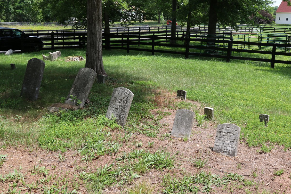 Close by the road, just at the approach to the house, is the family graveyard. The inscriptions on some of the stones are so worn that it is impossible to read them. Those decipherable are as follows: