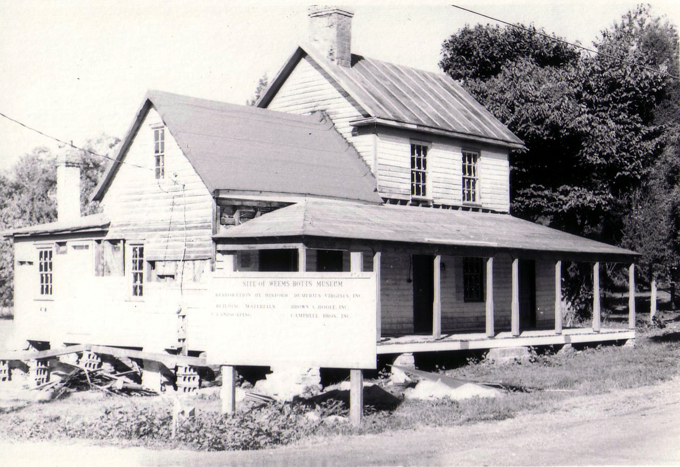 Ed Stallknecht was living in Dumfries in 1975 when the Weems / Botts structure was restored. Luckily he took pictures before the structure was restored as well. In 1976 Ed had a house built just up the hill from the Weems / Botts Museum and lived there until his death in 2013 at age 100!