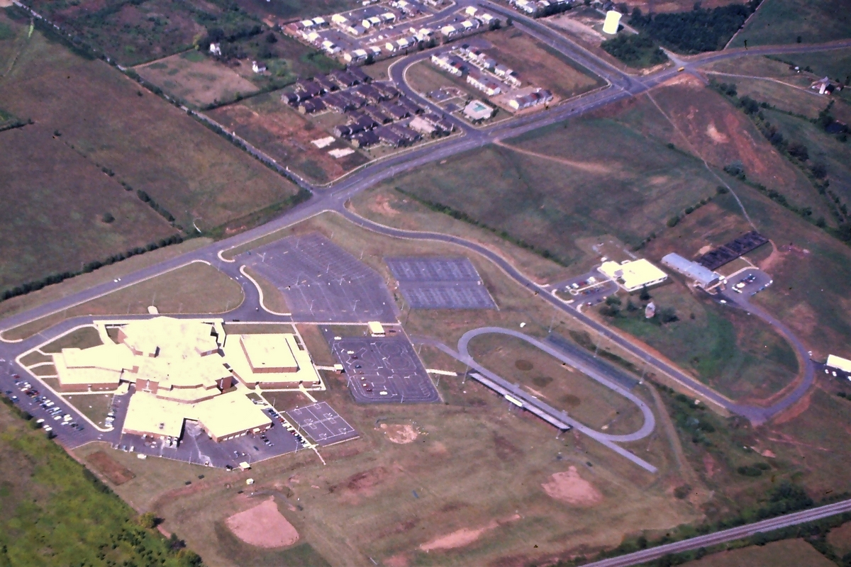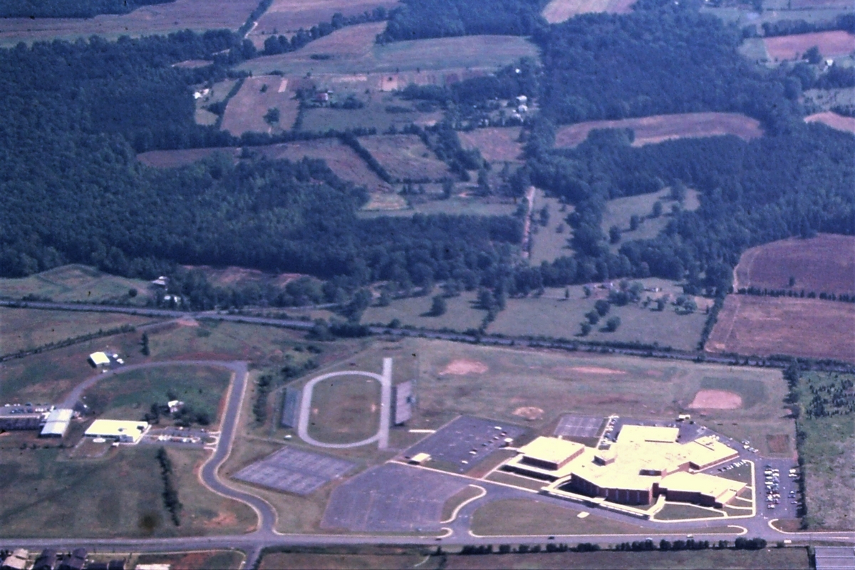This picture was taken by Ed Stallknecht in the late 1970s. It shows the recently completed Osbourn Park High School and in the lower right is the Conner House. Note the lack of development, Manassas Drive doesn't continue across Euclid Dr.
