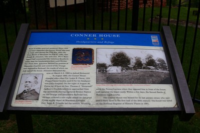 The Blooms House once sat on a large farm known as Blooms Hill. Conner House is the more modern name for the house named after the owner of the house between 1914 and 1973, E. R. Conner. It has also been called the Duncan House after a tenent who was renting it during the Civil War. During this time the property was owned by Lewis B. Butler. Butler owned several properties in the area, including the farm known as Birmingham Green, just up the road.