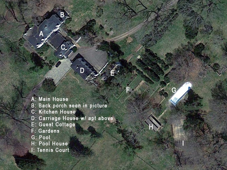 There is pretty much everything you could want on the estate, huge house, guest houses, big garage, huge pool, packed clay tennis court, shooting range, a winery, 3 ponds, a huge barn (2 other huge barns burned years ago), lots of animals including a black bear, acres and acres of soft grass to run around on and the stars at night are amazing.