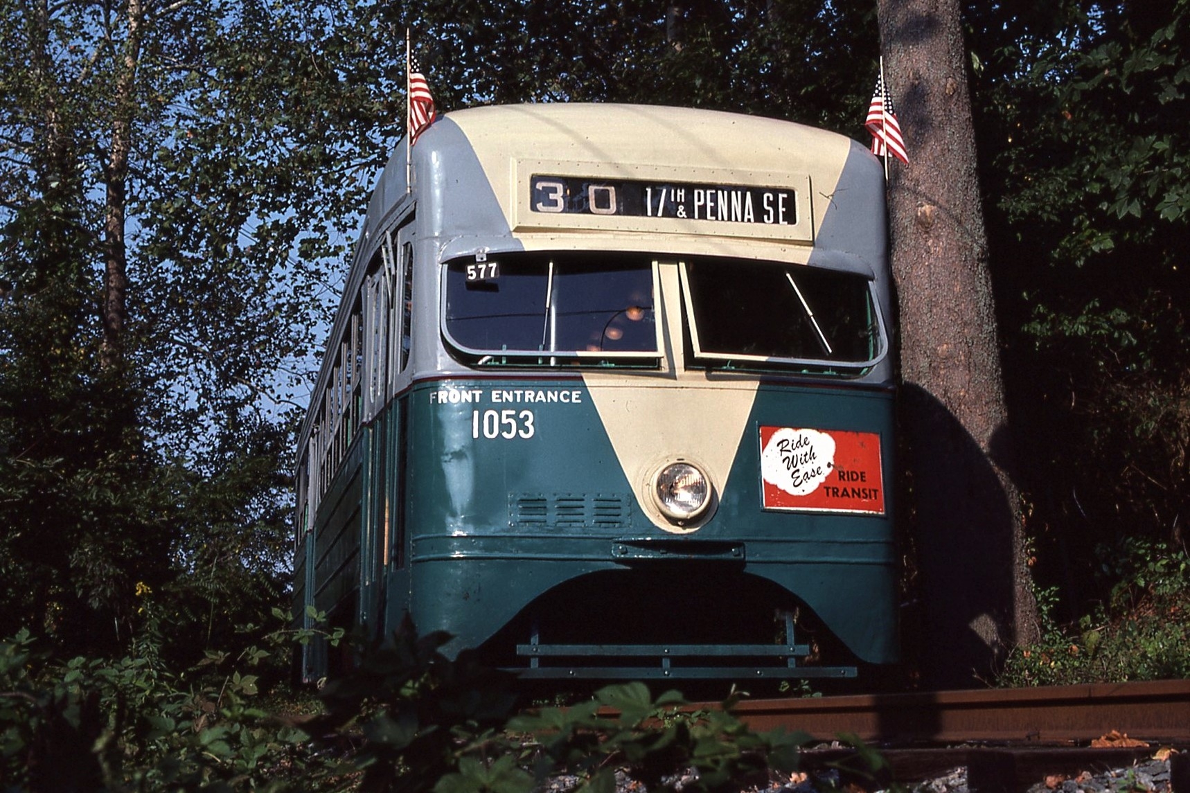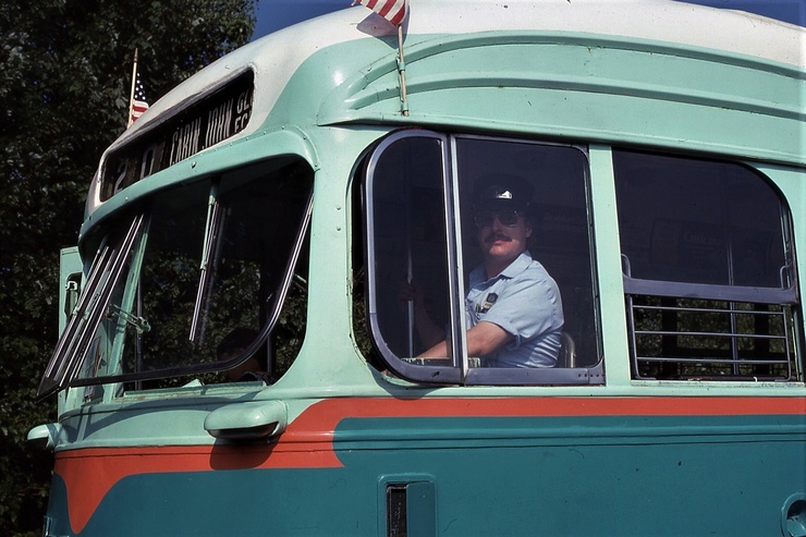 National Cap. Trolley Museum. Barry G. Smith operating car #1101, Ex Wash. DC street car. 1937 St. Louis Car Co., taken Sept 5, 1983 - #103