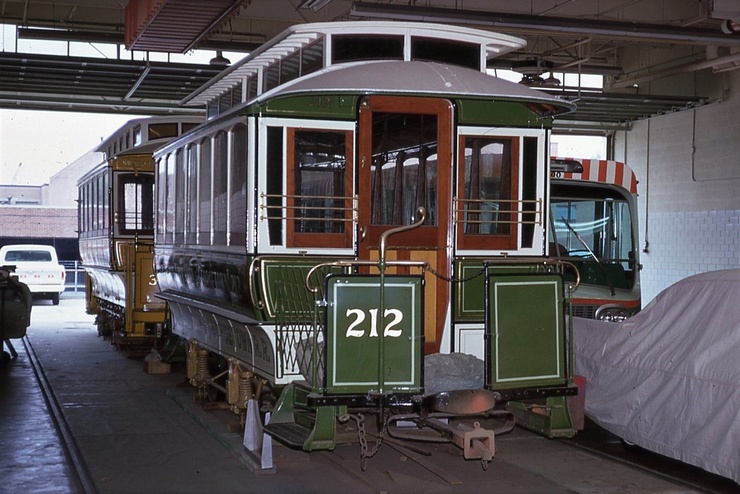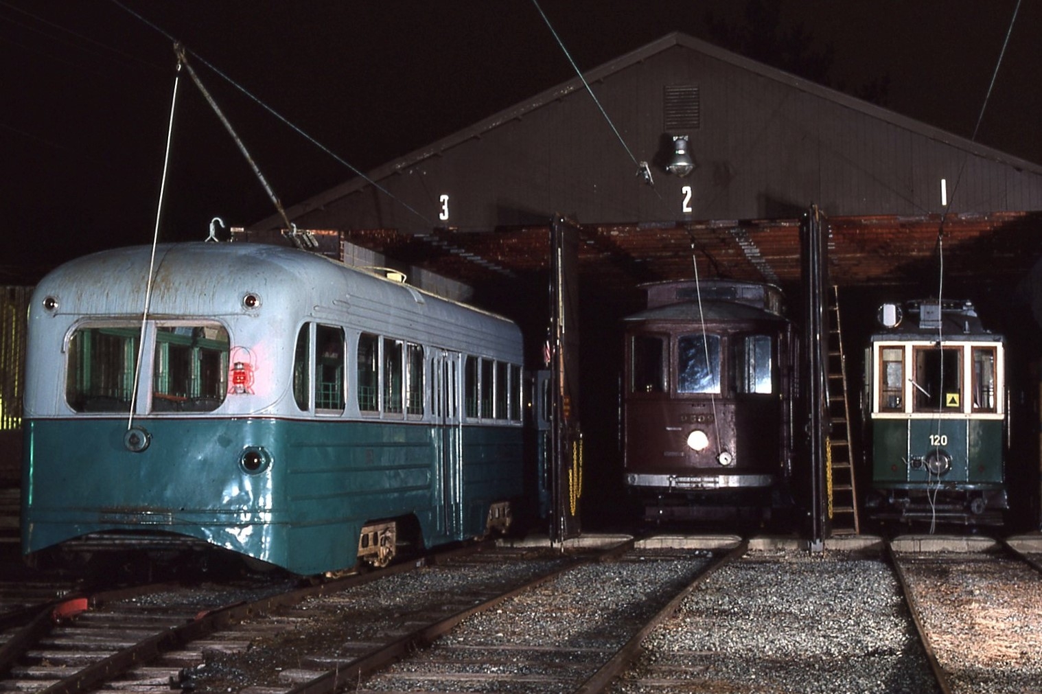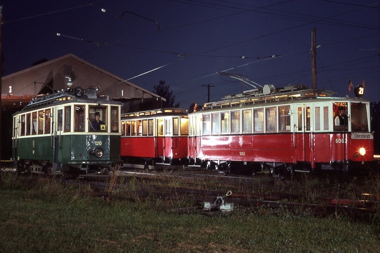 NCTM, Wheaton. Lower carhouse #1 #120, Ex-Graz, Austria 1909 #6062 and #7802, Ex-Vienna Austria, Both made in 1910. Taken Sept. 28, 1985 - #113