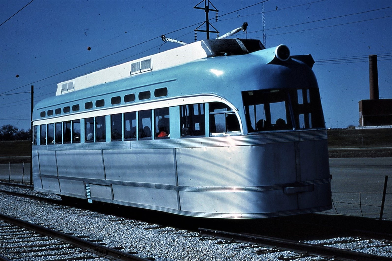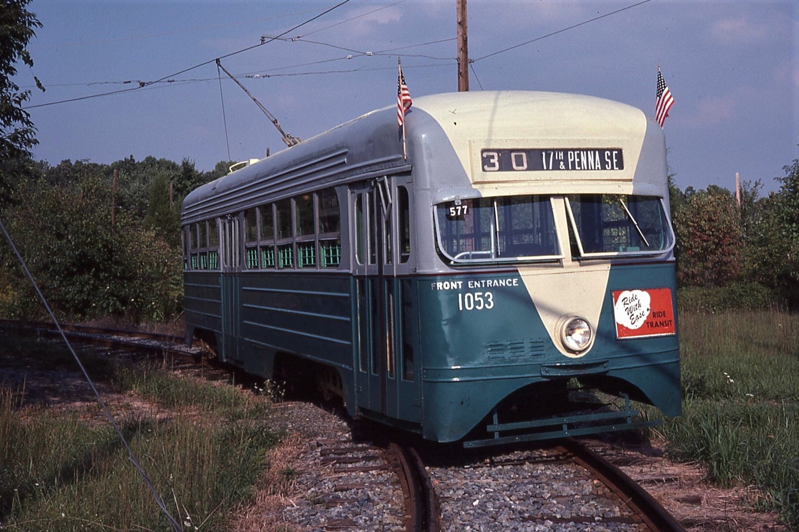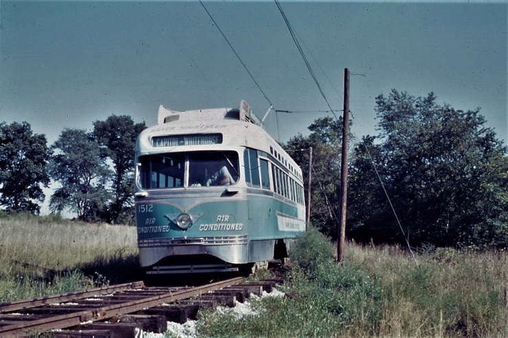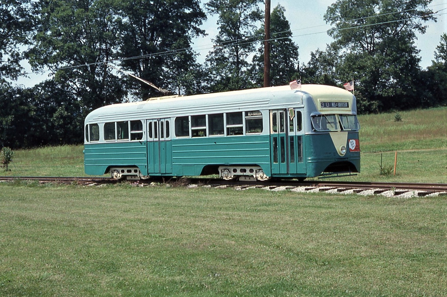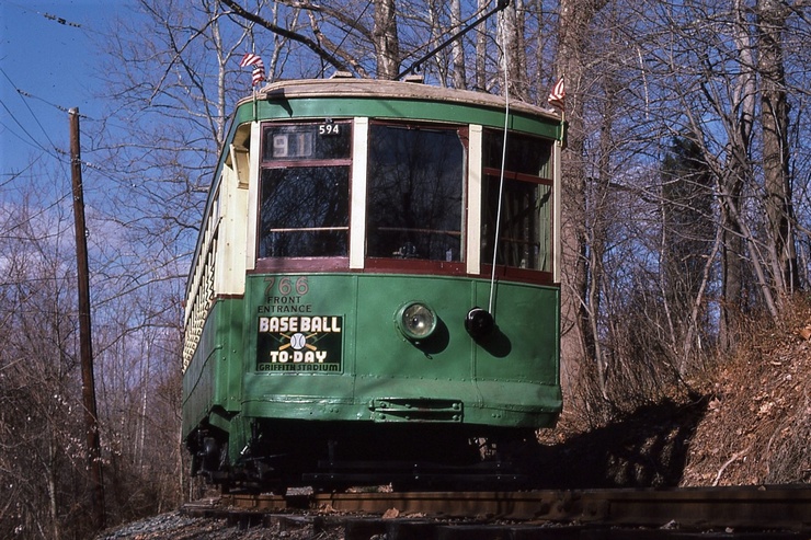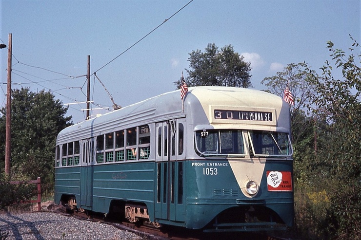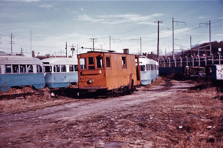 General Electric Corp Erie, PA Ex DC Transit #1304 Used as test car for automated operation. 1963-1975 Sold to trolleyville USA in Cleveland Ohio, Now at Seashore Trolley Museum in Kennebunkport ME. Photo taken 1976 - #135