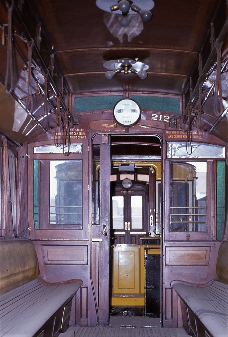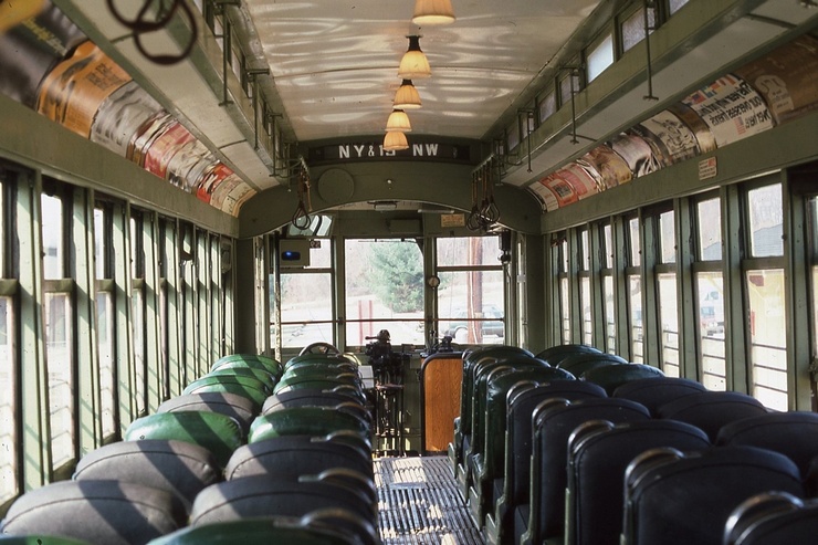 Capital Transit #884, Interior, towards #1 end. May 20 1984, At Shore Line Trolley Museum, Photo by J, Shriver - #120