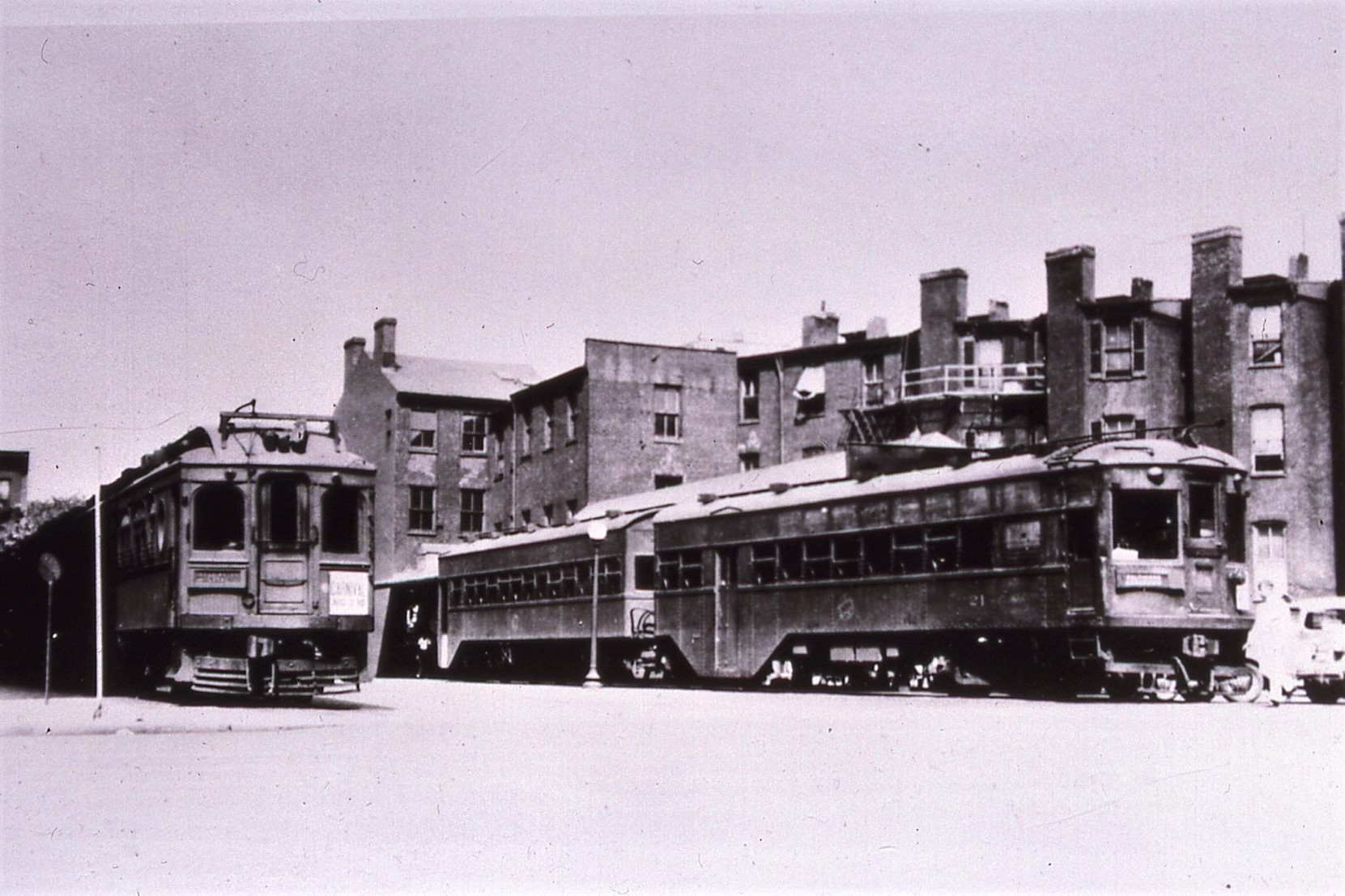 Ex-Washington-Virginia Railway and Arlington-Fairfax Railway #82 or #83, Ex-Slate Belt Railway, 1917 Brill, 26th and G Streets, taken July 1961 - #35