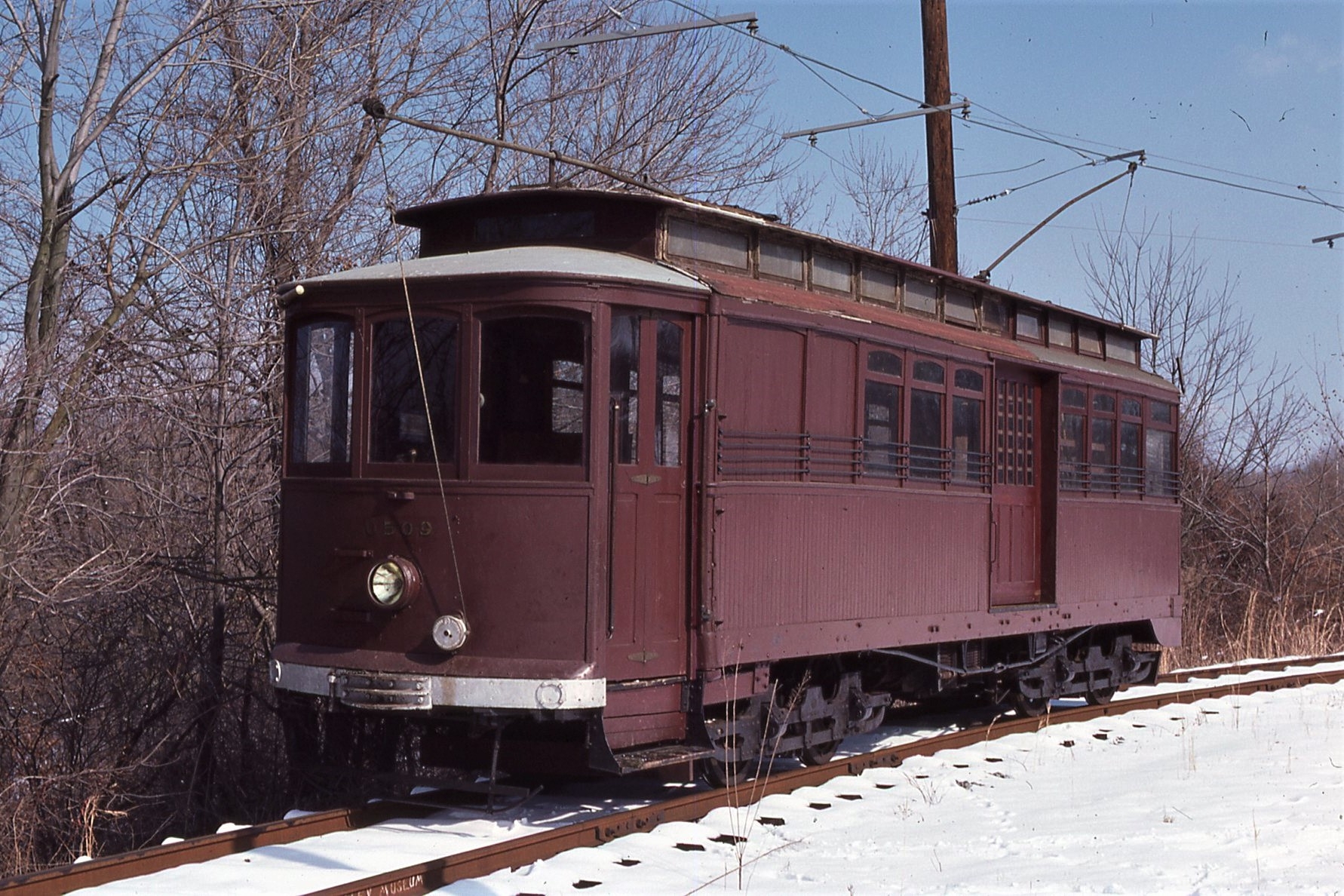 NCTM, Wheaton, MD, Sycamore Curve, #0509, Ex Wash Ry and Electric, American Car Co, 1899, taken Feb. 1986 - #51