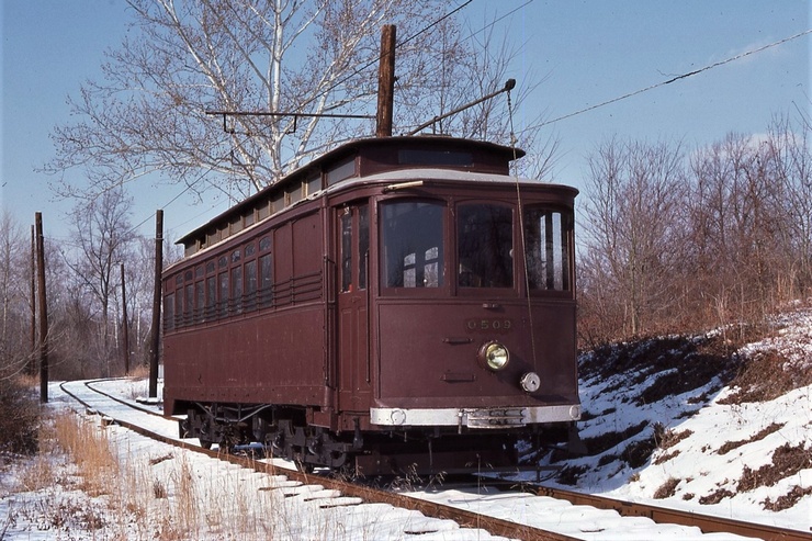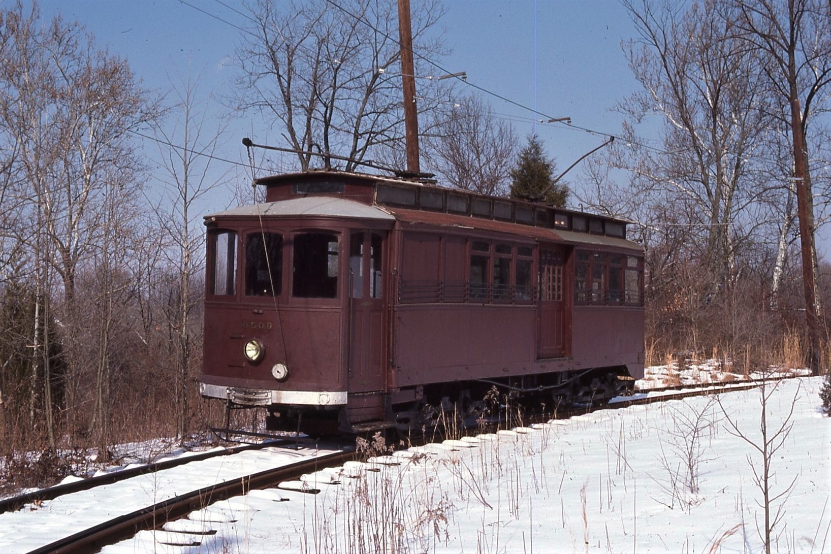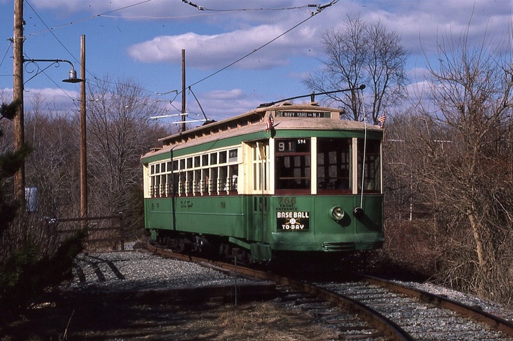 NCTM, Wheaton, MD, Sycamore Curve, #0509, Ex Wash Ry and Electric, American Car Co, 1899, taken Feb. 1986 - #52