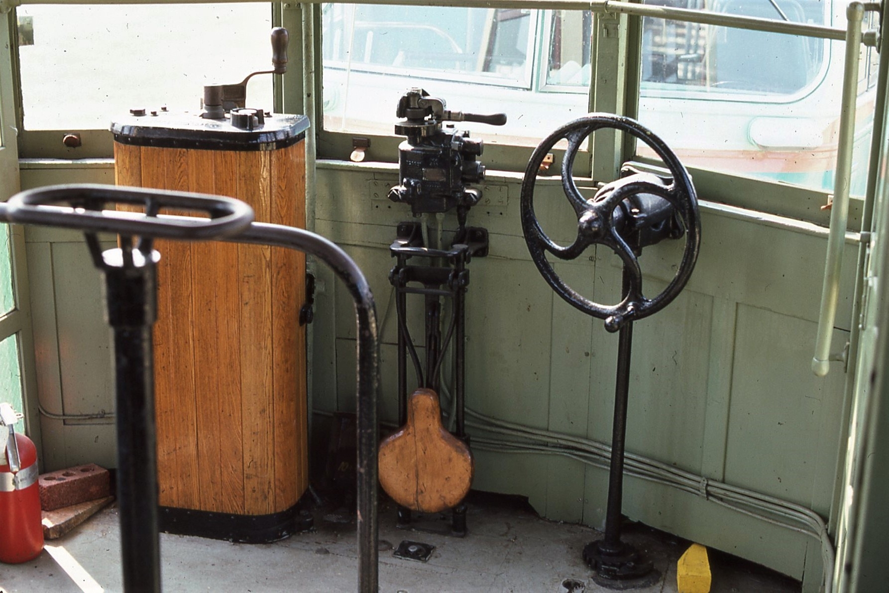 Capital Transit #884, View into Vestibule, towards #1 end. May 20 1984, At Shore Line Trolley Museum, Photo by J, Shriver - #121