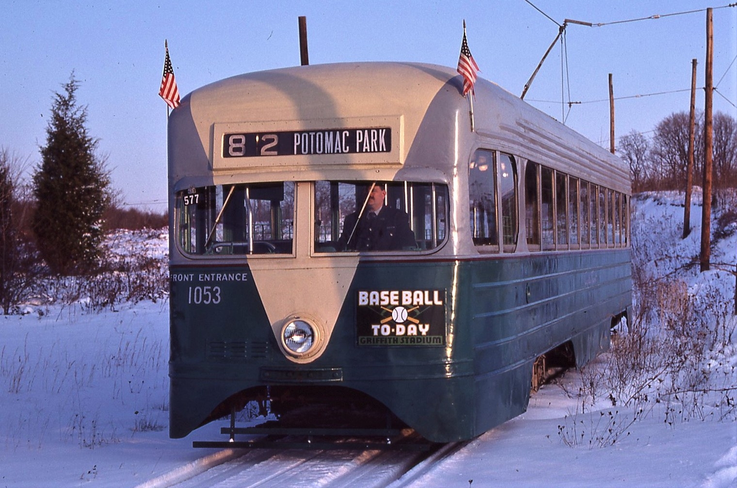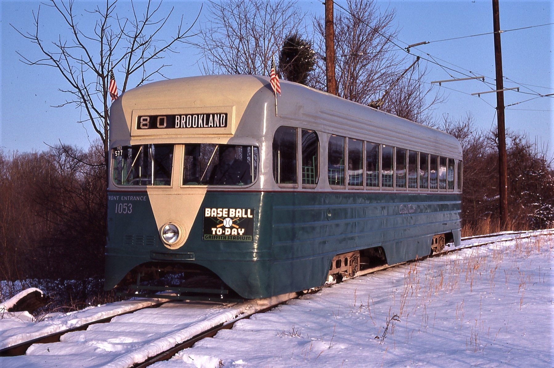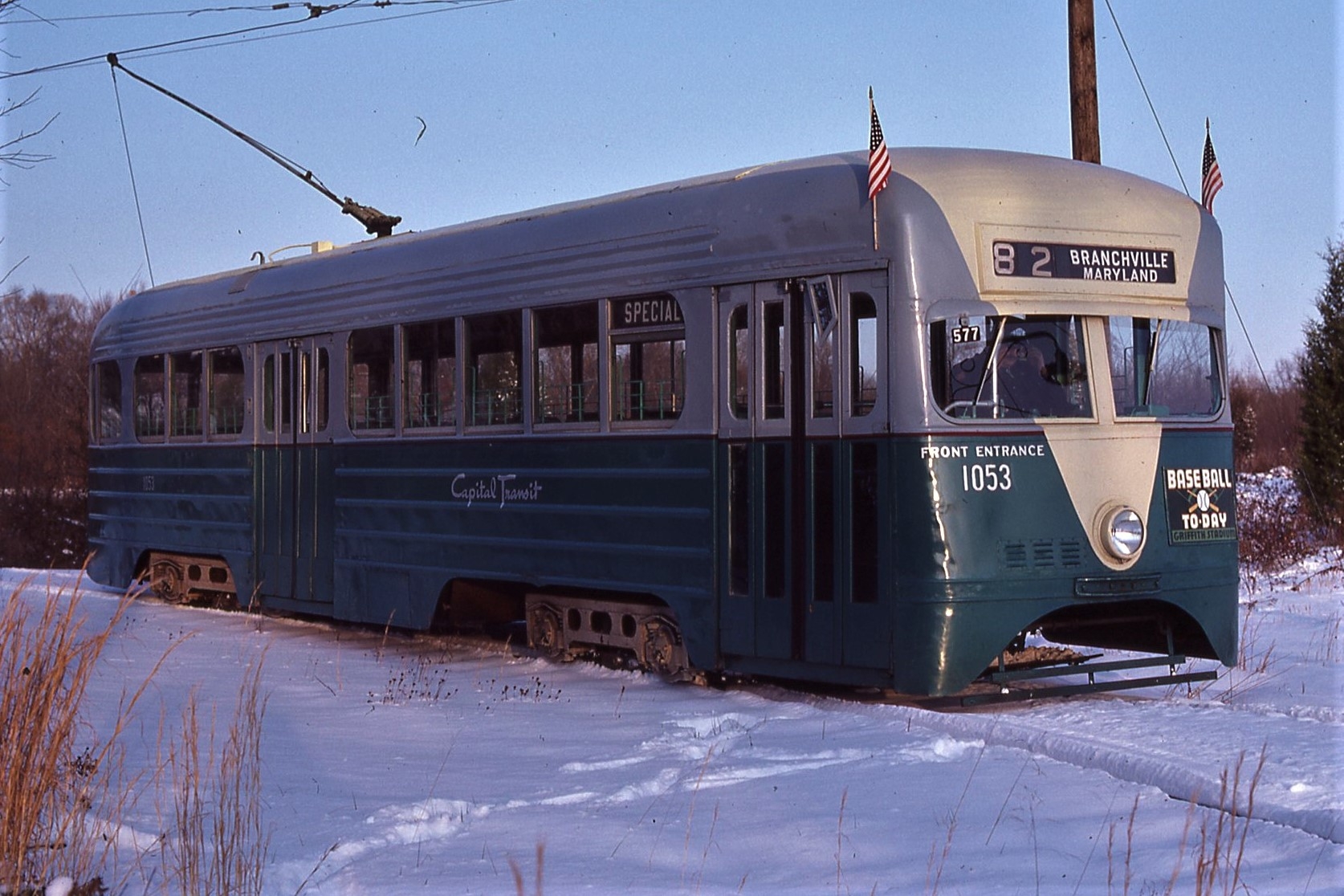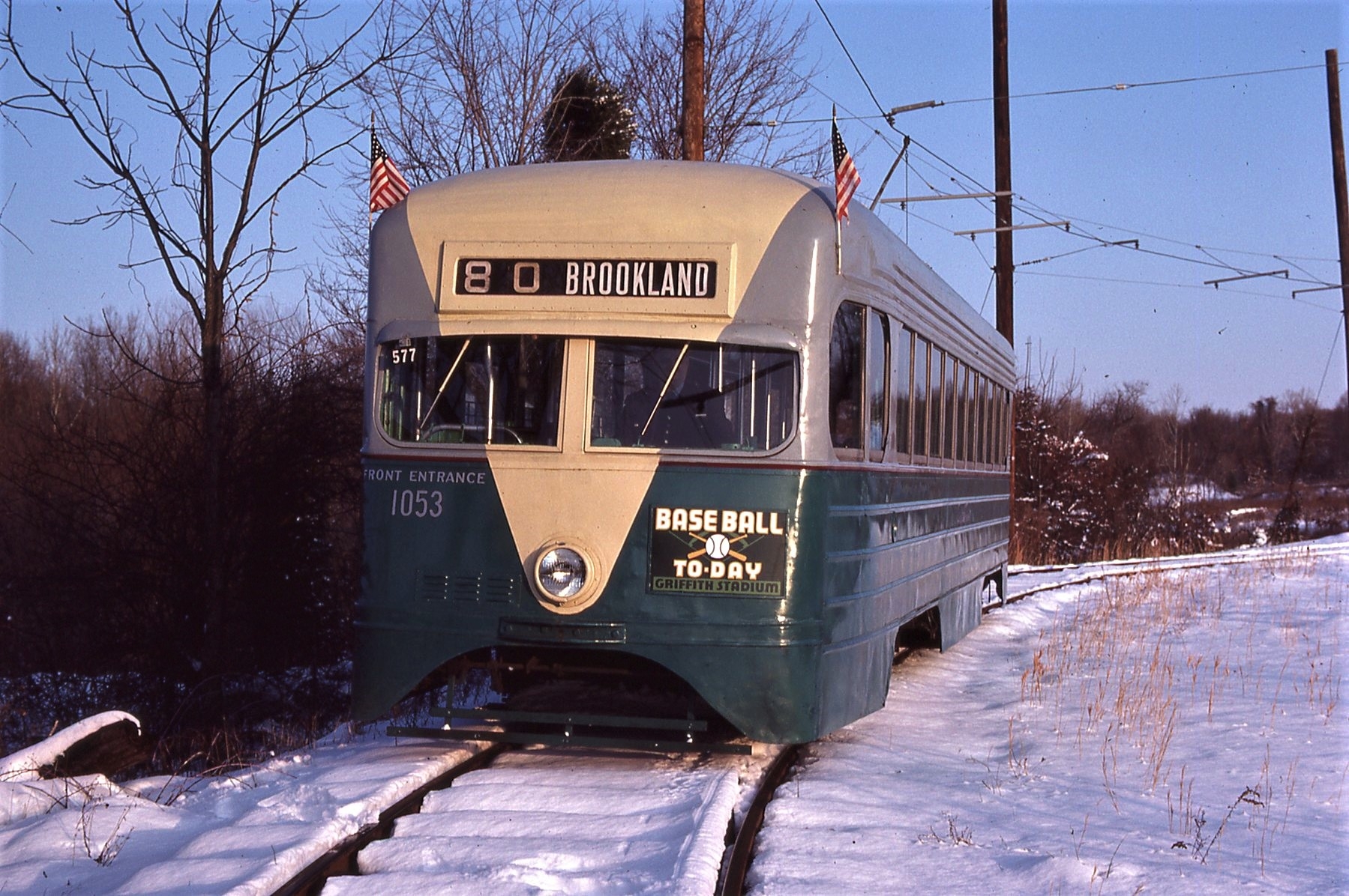 NCTM, Wheaton MD, Fish Hook Siding, #1053, Ex-DCTS, 1935 Express, Pre-PCC, St. Louis Car Co. Taken Feb. 16, 1985 - #87