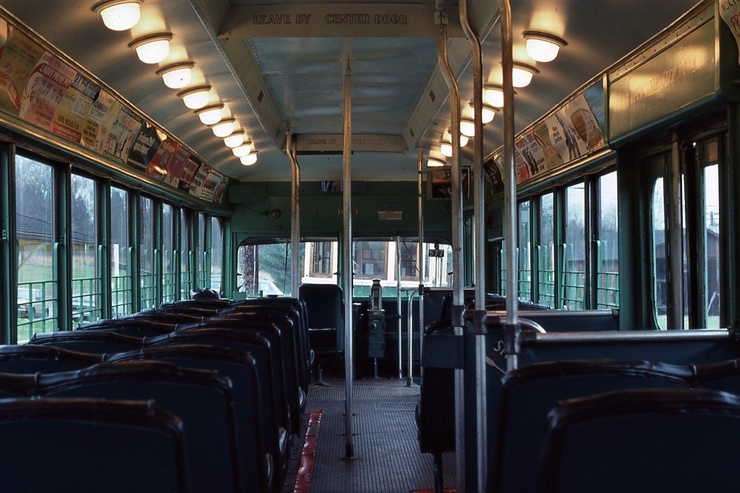 Capital Transit #884, Interior, towards #2 end. May 20 1984, At Shore Line Trolley Museum, Photo by J, Shriver - #122